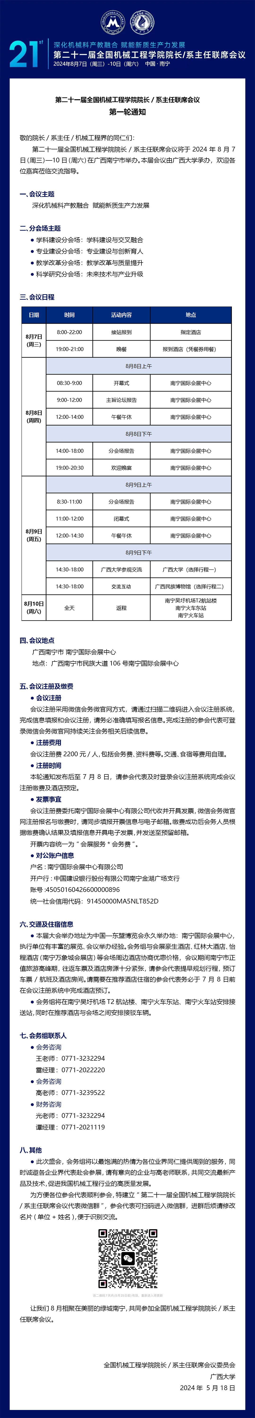 第二十一届全国机械工程学院院长/系主任联席会议第一轮通知