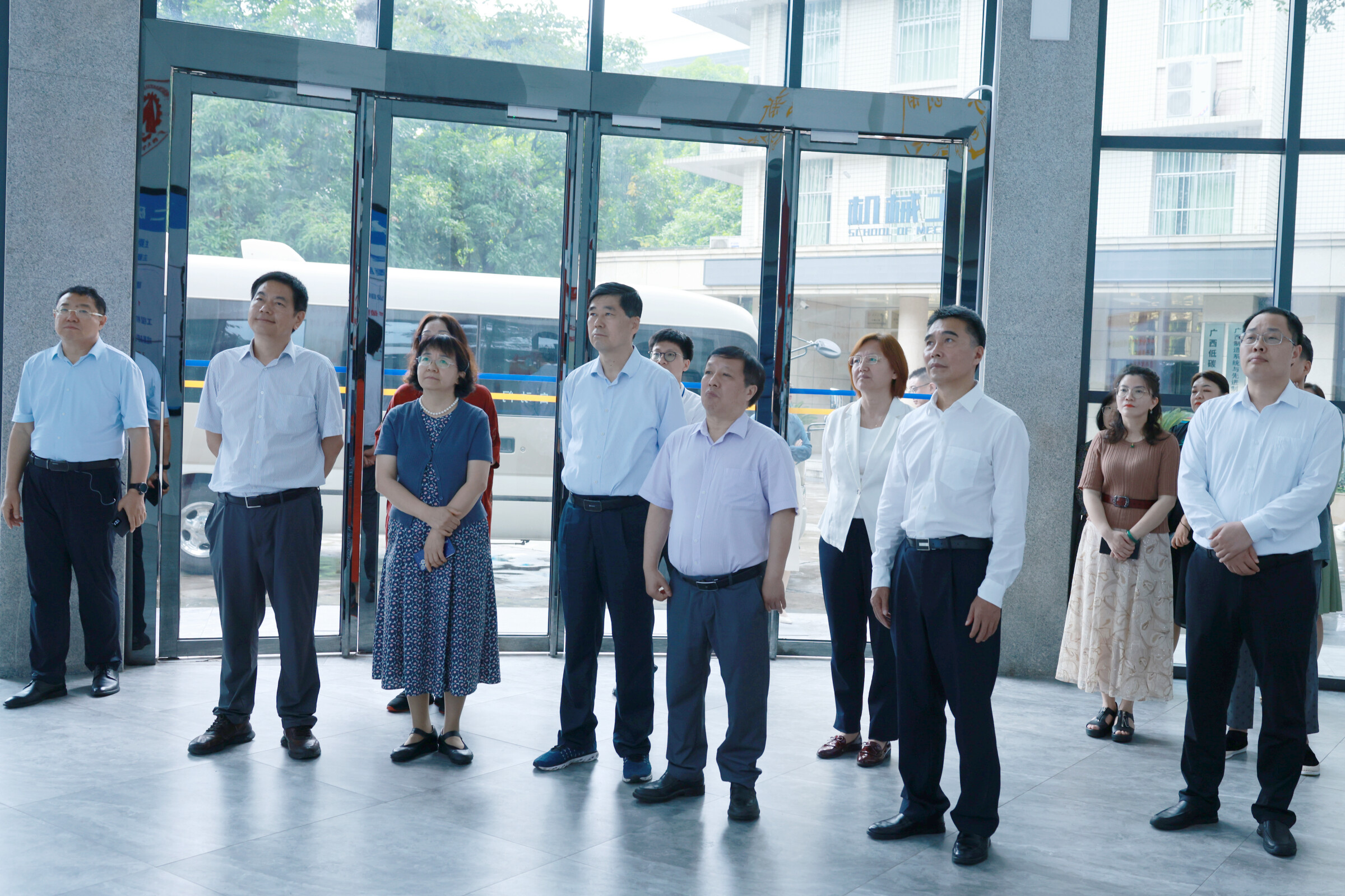 全国政协委员、中华职业教育社副理事长苏华,全国政协委员、广东技术师范大学副校长许玲,全国政协委员、浙江财经大学副校长郑亚莉,吉林城市职业技术学院院长孙进,民建中央调研部二级巡视员李沛熹等参加调研。广西大学党委副书记马献力,广西大学党委常委、副校长夏国恩陪同调研。我院党委书记卢婵江、副院长(主持工作)贺德强介绍中国—东盟智能制造技术创新学院建设规划和技术创新学院智能制造车间情况。