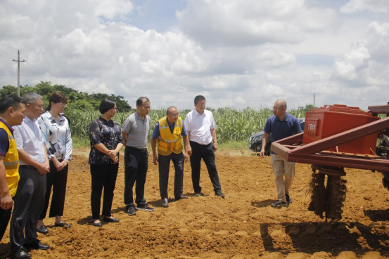 揭牌仪式结束后领导嘉宾前往机械工程学院在农科新城的试验基地,现场观摩由机械工程学院杨望副教授团队研发的粉垄机作业。该粉垄机是广西大学机械工程学院杨望科研团队2023年自主研发的第一代适合广西丘陵山区的小型低阻粉垄机。当耕作深度达40cm时,其作业阻力比目前主流的粉垄机降低了18%,作业效率提高了20%,作业后可实现甘蔗增产27%左右以及一次耕作可连续多年增产。