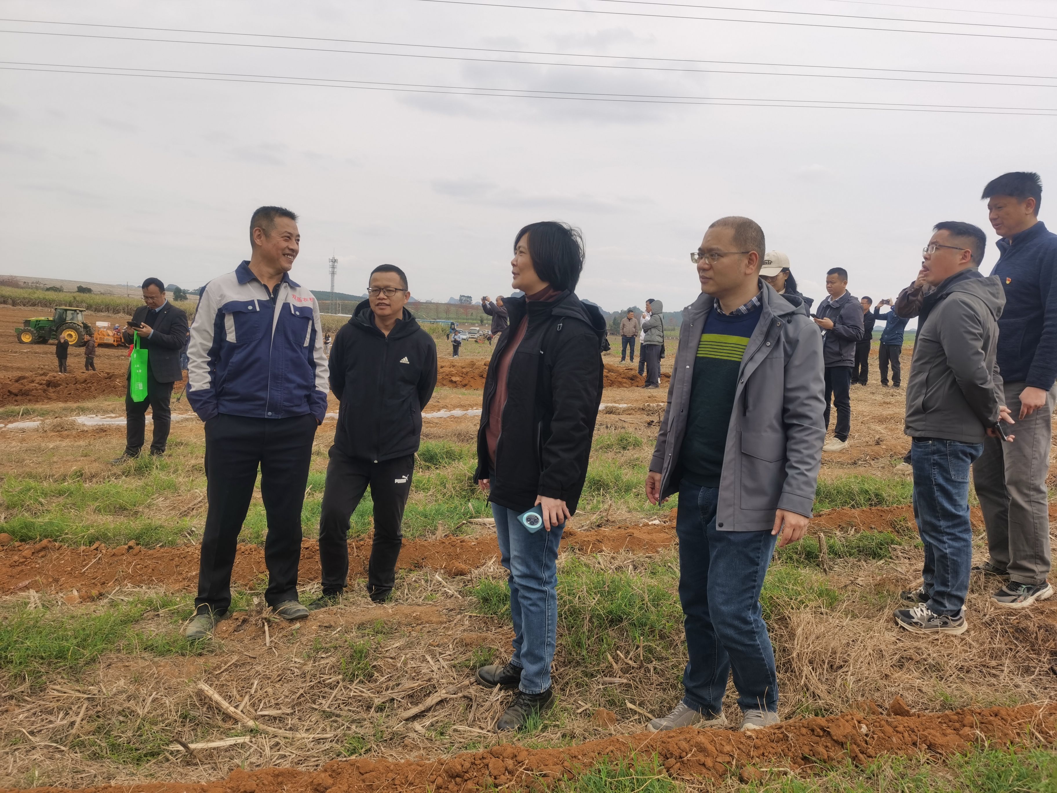 2025年3月18日,由广西农业农村厅主办,扶绥县人民政府承办的“2025年广西甘蔗机械化春种春管现场会”在我院位于农科新城的“广西农业机械化产学研推示范基地”召开。此次现场会以“甘蔗春种春管智慧农机+”为主题,集中展示了智能化、无人化农机设备在甘蔗春种春管中的创新应用,为推动甘蔗产业现代化发展注入强劲科技动能。学院党委书记、现代产业学院常务副院长卢婵江、现代产业学院办公室主任杨望等20名师生代表到现场观摩。