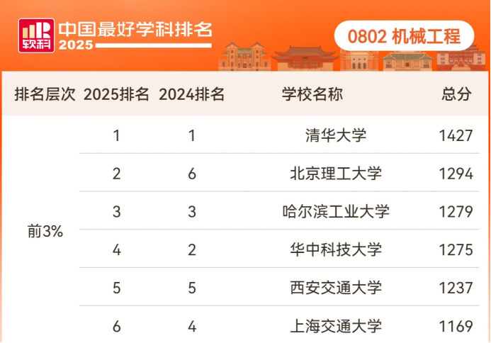 2025年10月15日,软科正式发布“2025中国最好学科排名”。数据显示,在全国约630所开设机械类专业的高校中,我院机械工程学科表现亮眼,排名首次跻身全国前60,进入全国前30%,并实现过去五年内的连续攀升,连创历史新高;与2024年相比,位次大幅提升了22名。