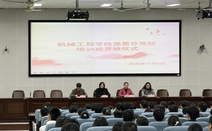 2025年11月4日下午,机械工程学院党委分党校2025年下半年开班仪式暨入党积极分子培训班第一次课在六教第二阶梯教室进行。院党委书记兼分党校校长卢婵江,院党委副书记兼纪委书记黄路明、院团委书记李华、培训班班主任彭程程及本期培训班近290名学员参加活动。
