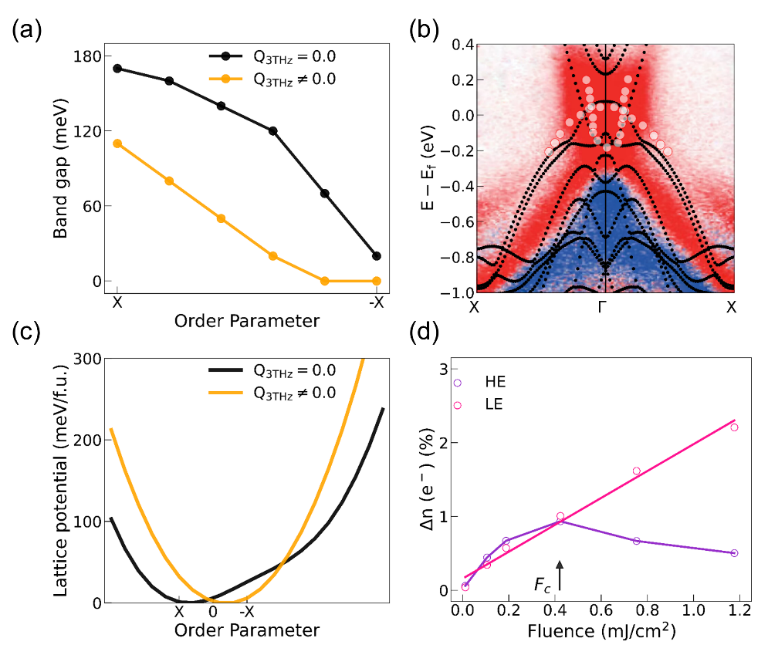 图2. 声子激发及诱导的晶格序参量反转,并与实验结果进行对比。